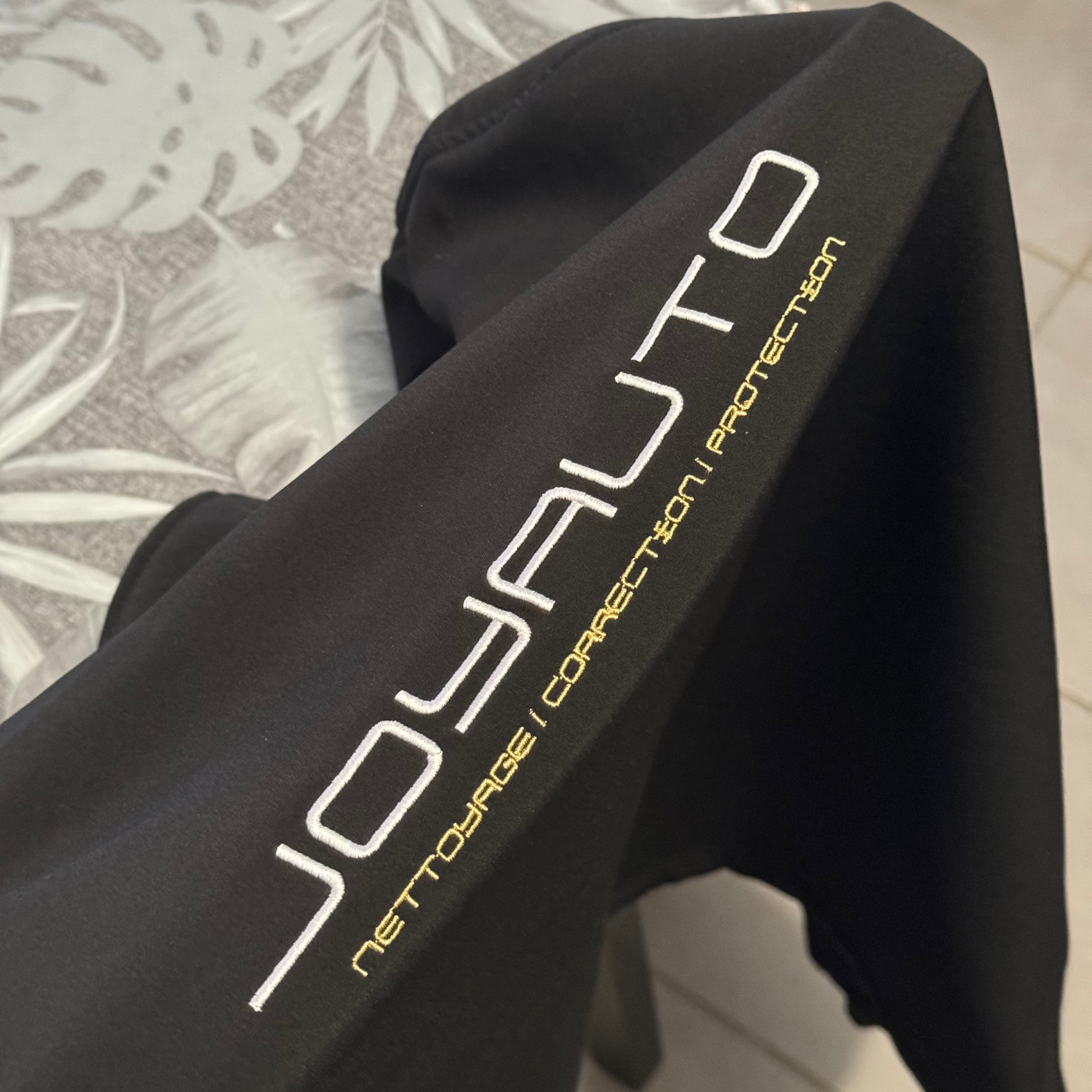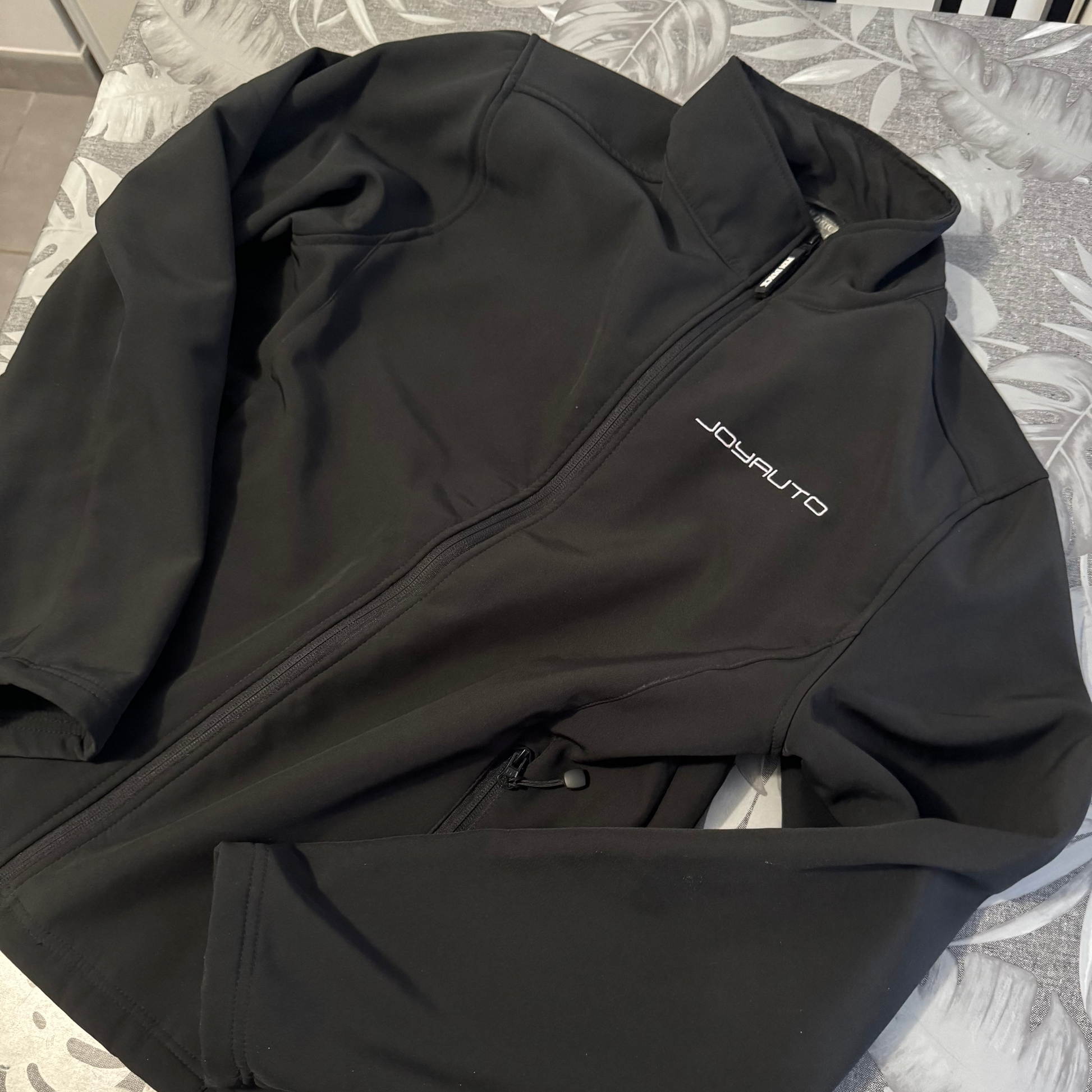 Veste softshell JOYAUTO Noir avec logos brodés.